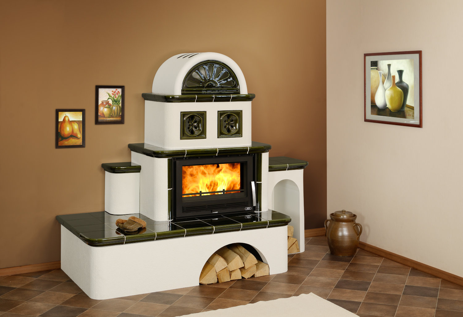 Отопительные печи чаще всего используются в качестве резервного источника тепла. Они обеспечивают равномерное прогревание воздуха, который потом циркулирует по комнате. Такие печи отопления имеют высокий коэффициент полезного действия — до 90%. Причем в современных печах он может увеличиваться и уменьшаться за счет увеличения или уменьшения подачи воздуха к огню.