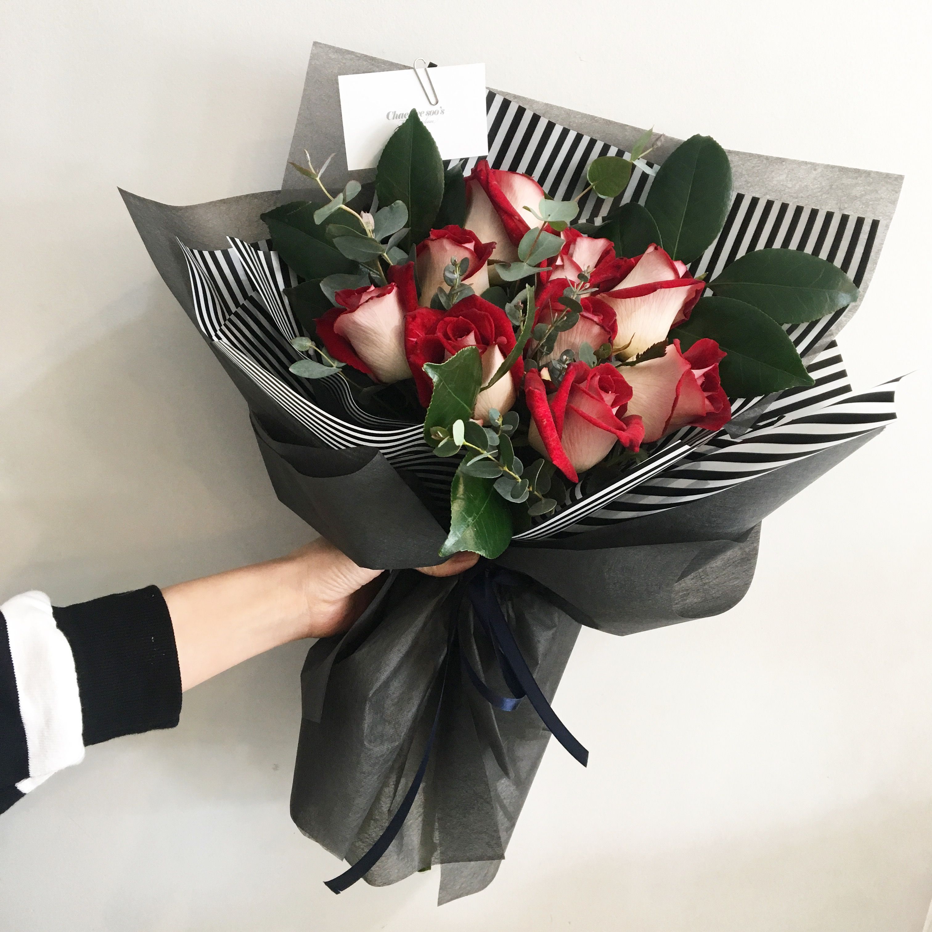 В корейской флористике в качестве упаковки чаще всего применяется калька. Связано это не только с привлекательным видом, но и с практичностью материала: калька не портится от воды, а потому букет можно хранить в холодильнике или контейнере с водой, и он не потеряет презентабельности. Также очень часто применяется бумага тишью — тонкая папирусная бумага, очень приятная на ощупь, легко принимает фактически любую форму и представлена в широчайшем многообразии оттенков. Пользоваться ей одно удовольствие, а упакованные в тишью цветы выглядят изысканно и утонченно.