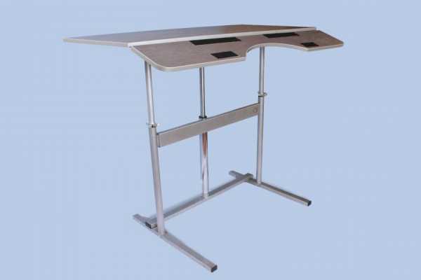 - Оптимальный вариант высоты легко подбирается с помощью столешниц с регулируемыми креплениями, с которыми способен справиться любой взрослый. Производители современной регулируемой мебели делают расчет гидравлики для нестандартных высоких и низких параметров. Изготовители предоставляют большой выбор даже для требовательного покупателя.