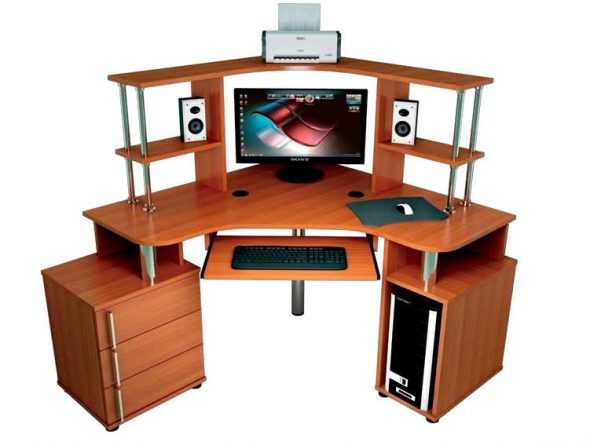 - комбинированный (состоит из столешницы и дополнительных элементов для размещения вещей и оргтехники).