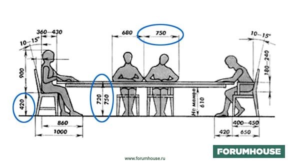 Конечно, эта формула идеально подходит для роста конкретного человека, но за обедом обычно присутствуют и другие члены семьи. В этом случае рекомендуется выбрать в качестве основы среднеарифметическую величину роста взрослых домочадцев, а детям можно предложить стулья с регулировкой высоты.