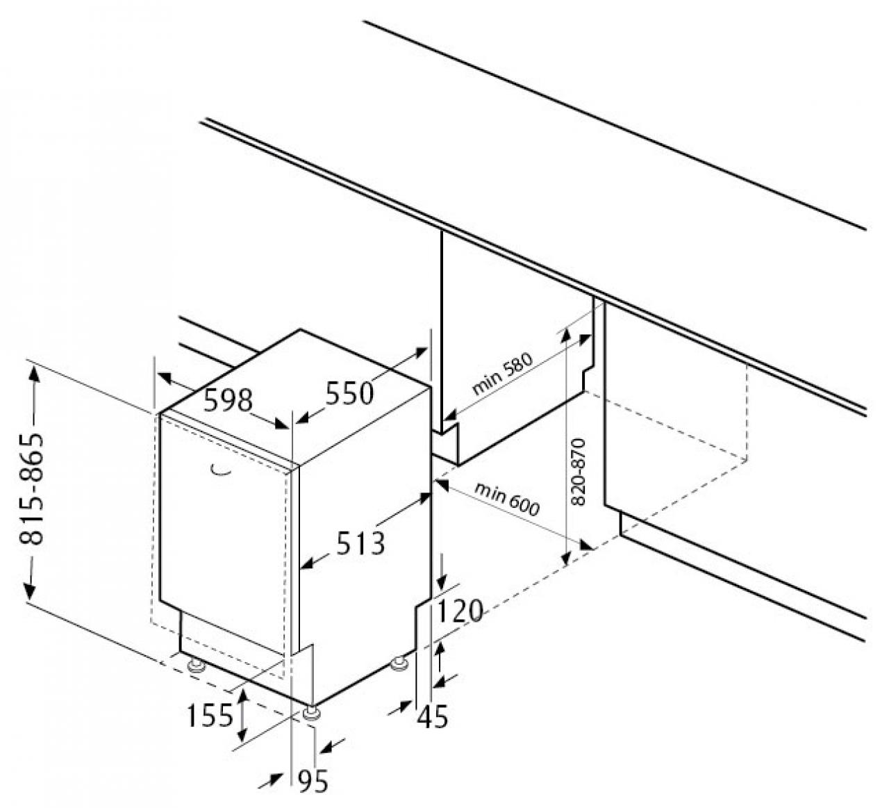 Габариты встраиваемых и частично встраиваемых посудомоечных машин