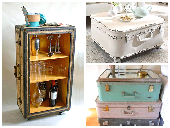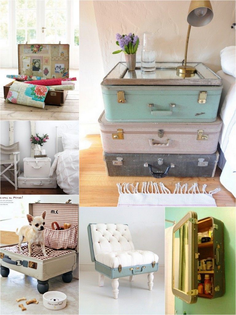 Столики и кресла, кроватки для домашних питомцев и подвесные шкафчики, дисплеи для хранения всевозможных вещей и даже аудио-центры — все это легко сделать из старых чемоданов, если включить фантазию и приложить немного сил.