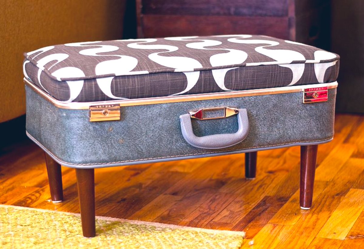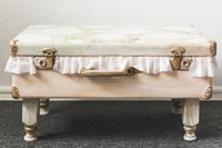 Но, увы, все эти небольшие предметы мебели порой имеют цену, несоразмерную с размерами и назначением. Старые чемоданы в качестве основы для подобных вещей не только сэкономят средства, но и позволят сотворить уникальную штучку.