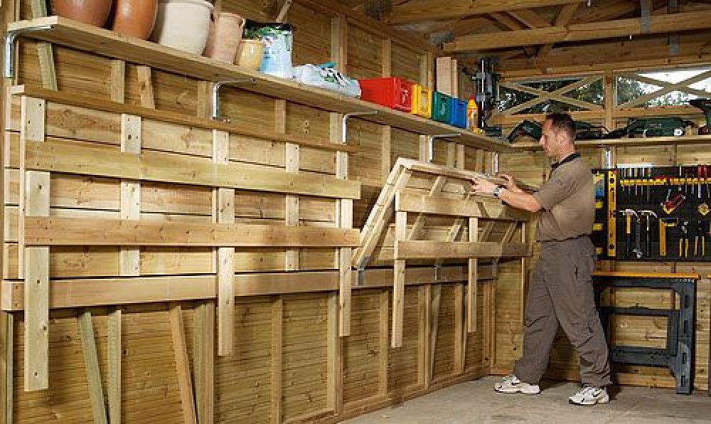 Стеллаж для гаража из дерева: полки и системы хранения, гаражные полочки для колес и для инструмента, оборудование разборных стеллажных конструкций
