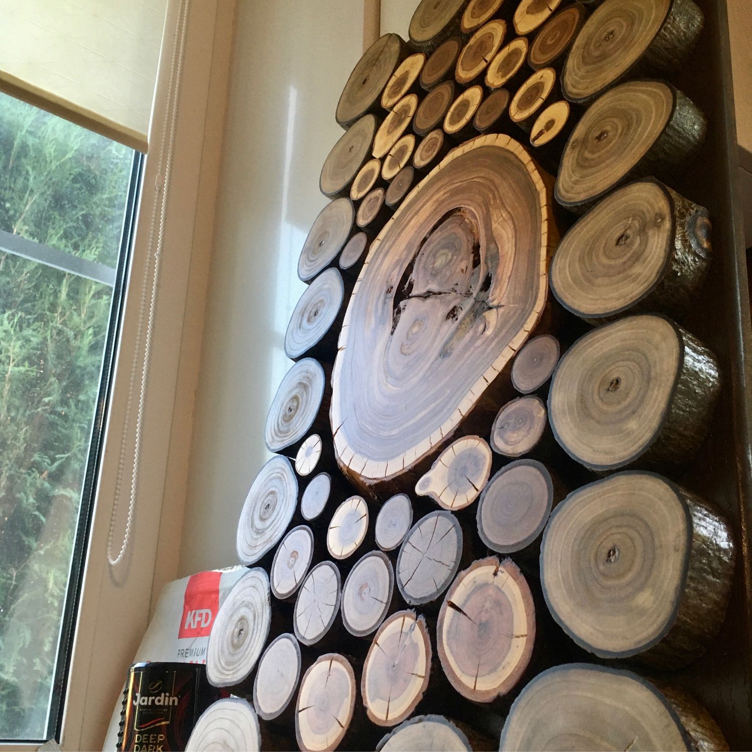 Стена из спилов дерева своими руками: Спилы дерева для декора: панно, изделия, отделка стен из среза дерева