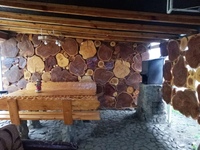Сегодня мастера снова вернулись к такой отделке, спилы натурального дерева используют для оформления полов и стен, для создания декора и «мощения» тропинок в саду.