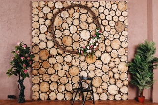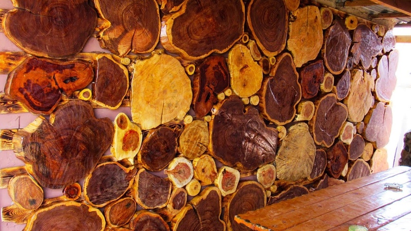 Когда речь заходит о таком декоре, многие ограничивают свою фантазию, представляя простые комбинации круглых деталей, полученных в результате распиливания бревен. Именно такие элементы используются в оформлении чаще всего. Однако, можно использовать элементы разной толщины и размеров, чтобы создать уникальный дизайн поверхности.