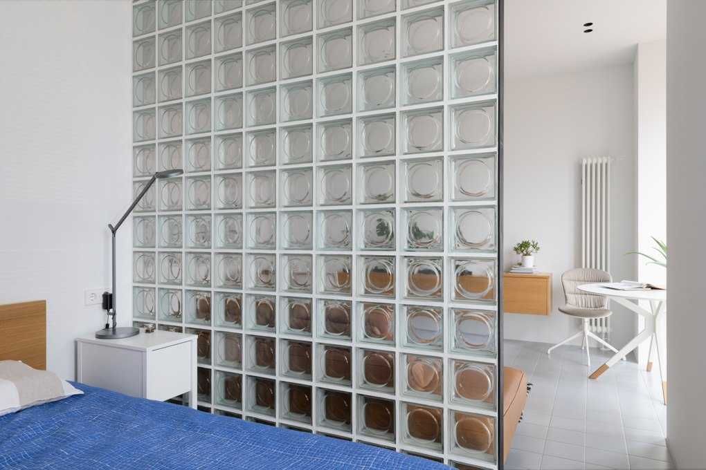 5. Стена из стеклоблоков ячеистой конструкциикрасиво дополняет интерьер