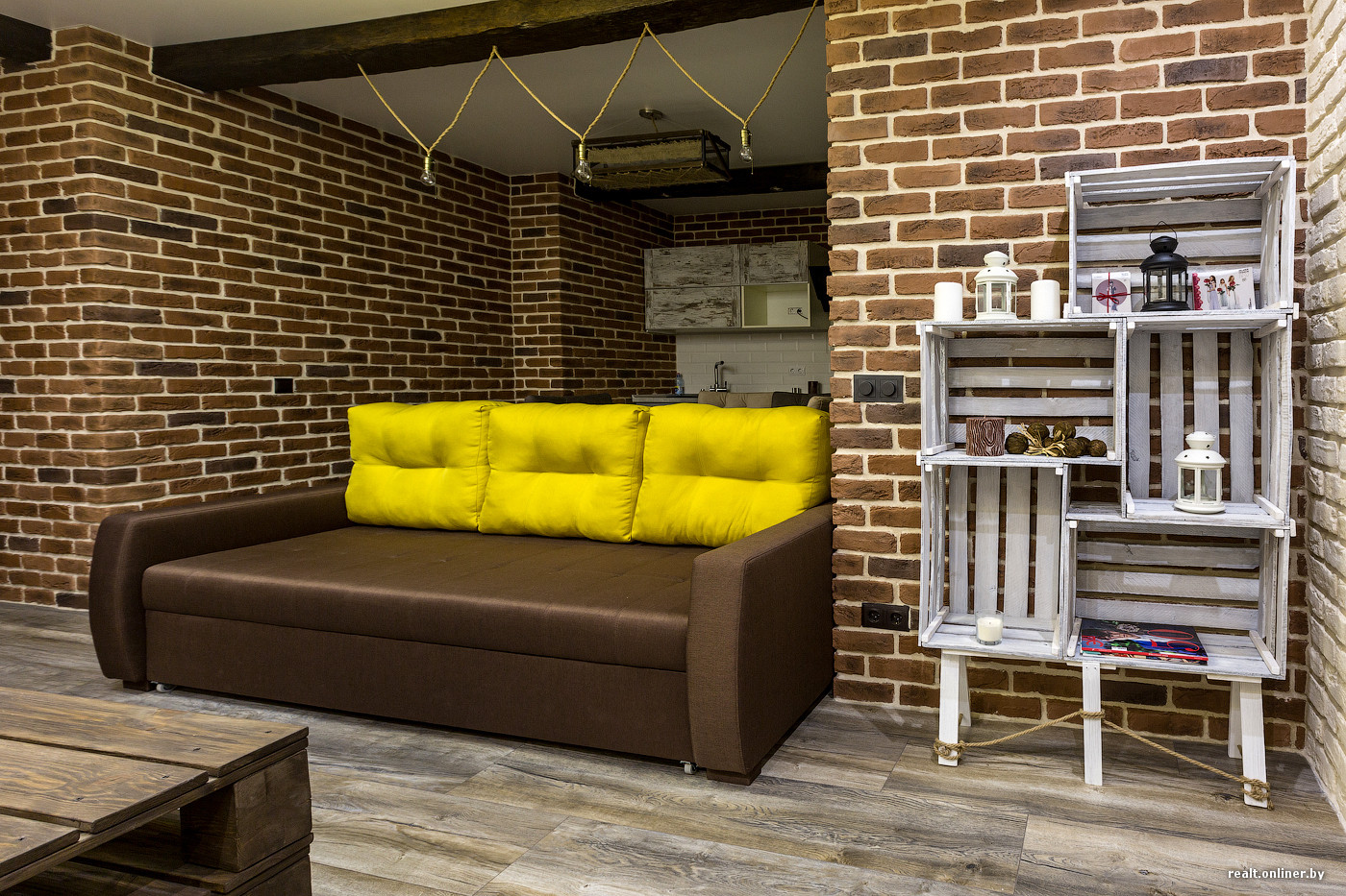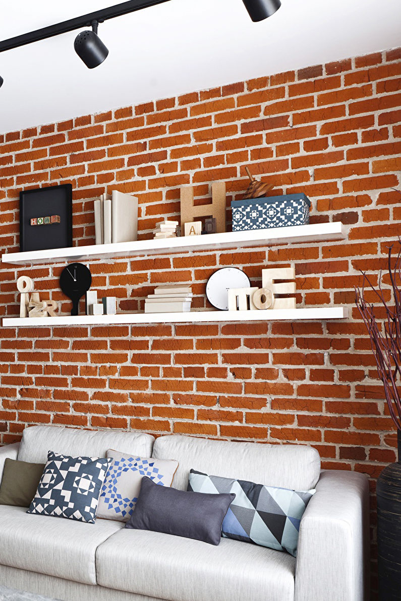 Натуральный красный кирпич или крашенный — выбор за вами, каждый цвет выглядит по-своему хорошо. Например, белый кирпич расширяет пространство, наполняет его светом, а красный выглядит более уютно.