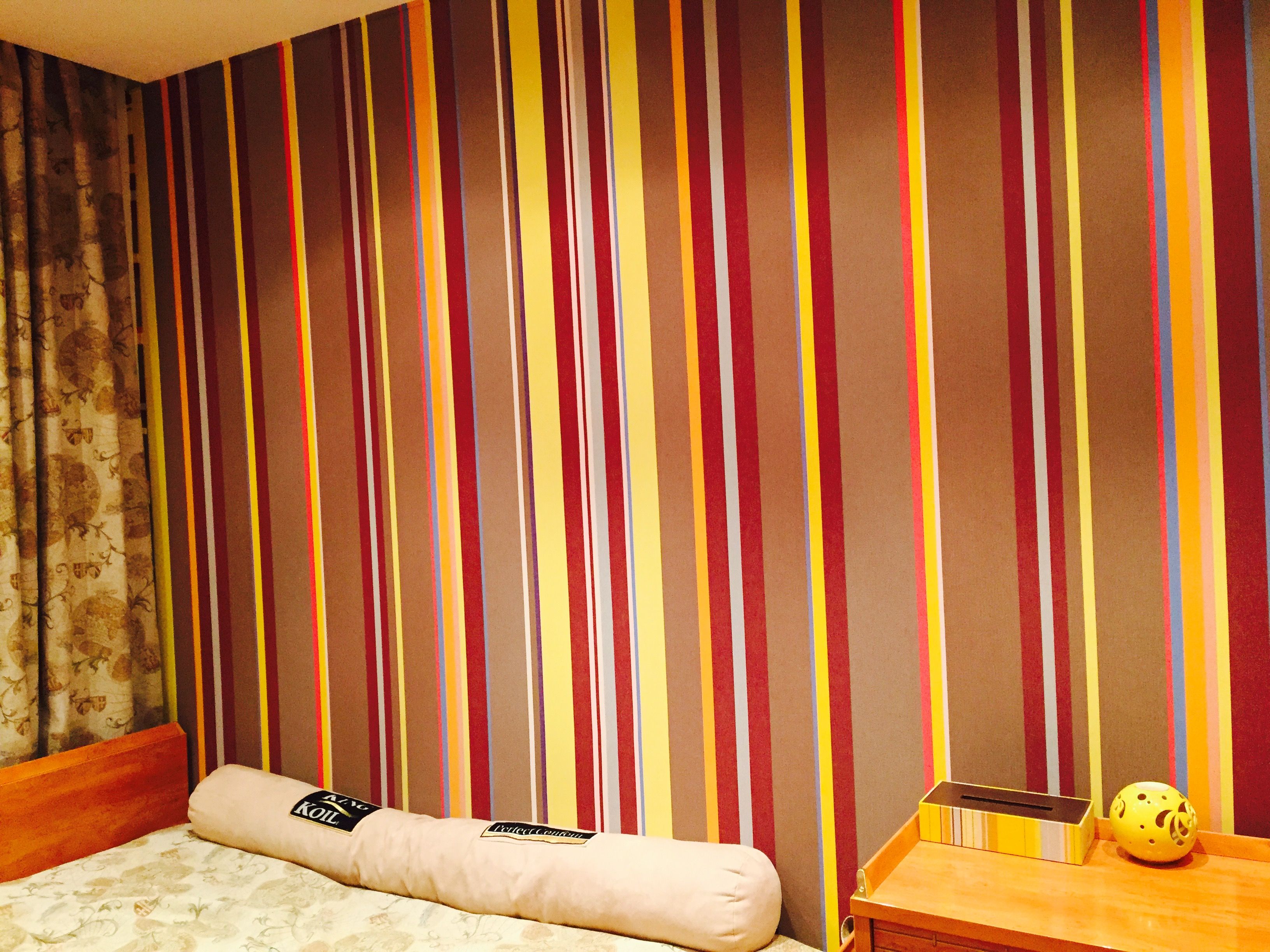 - Проверьте оклеенные стены на предмет наличия воздушных пузырьков: проткните иголкой такие зоны или сделайте там маленький надрез и снова разгладьте ткань на стене.