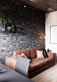 Кирпич самый традиционный способ оформления лофта. Необязательно, чтобы все стены были из кирпичной кладки или ее имитации, для придания нужного эффекта достаточно одной, скомбинированной, например, со штукатуркой. Цвет стоит выбирать, исходя из своих предпочтений. Красный кирпич смотрится весьма уютно, белый визуально делает пространство больше, а черный матовый идеально подходит для поклонников всего нестандартного.