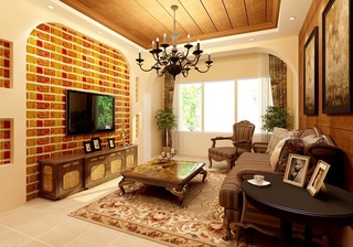 В отделке квартиры, можно применить и полиуретановые фальш-балки, декорированные под дерево. - Отделка стен в стиле кантри может быть выполнена простой или декоративной штукатуркой, в сочетании с каменной или кирпичной кладкой, деревянными панелями.