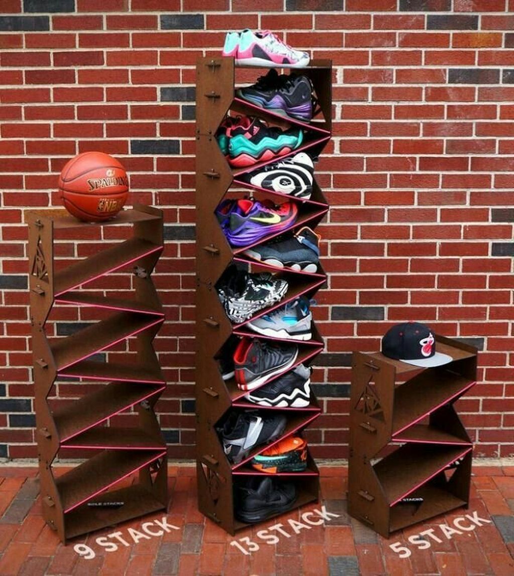 Вот еще одна полка для обуви, которую вы можете легко собрать.Все, что вам нужно, — это разрезать поддон, и вы можете построить столько уровней стеллажа, сколько вам нужно. Возможно, это не самая красивая стойка для вашего домашнего декора, но вы можете поэкспериментировать с морилкой и краской, чтобы сделать ее визуально привлекательной.