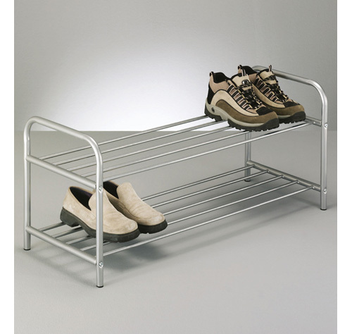 По своей стоимости полки для обуви из металла могут как превосходить деревянные (самыми дорогостоящими являются кованые изделия), так и быть гораздо доступнее (как например, базовая металлическая модель от Ikea).