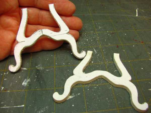 Я покрасил ножки и ободок акриловой краской цвета слоновая кость. Дайте просохнуть ей, а потом отшкурьте все детали. Затем снова нанесите краску на гладкий слой и просушите его.