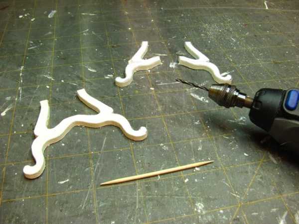 При помощи Т-образного штифта сделайте отверстия в боковинах ножки, которую мы разрезали ранее.