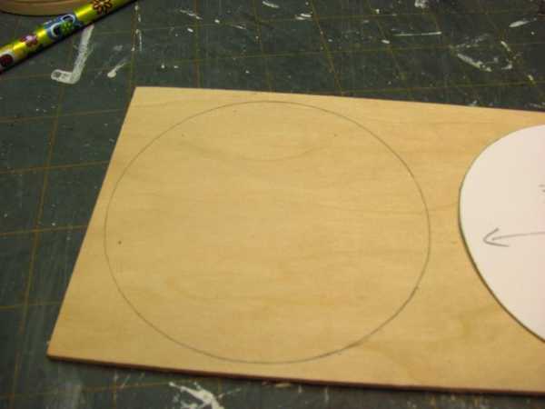 Нарисуйте круг циркулем и отрежьте его при помощи ножа для резьбы по дереву. Обработайте края наждачной бумагой.