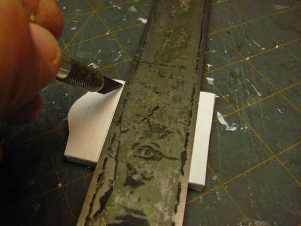 Надавите внутренней частью вашего ножа (или используйте зубочистку) в местах углубления, чтобы полоса хорошо легла.