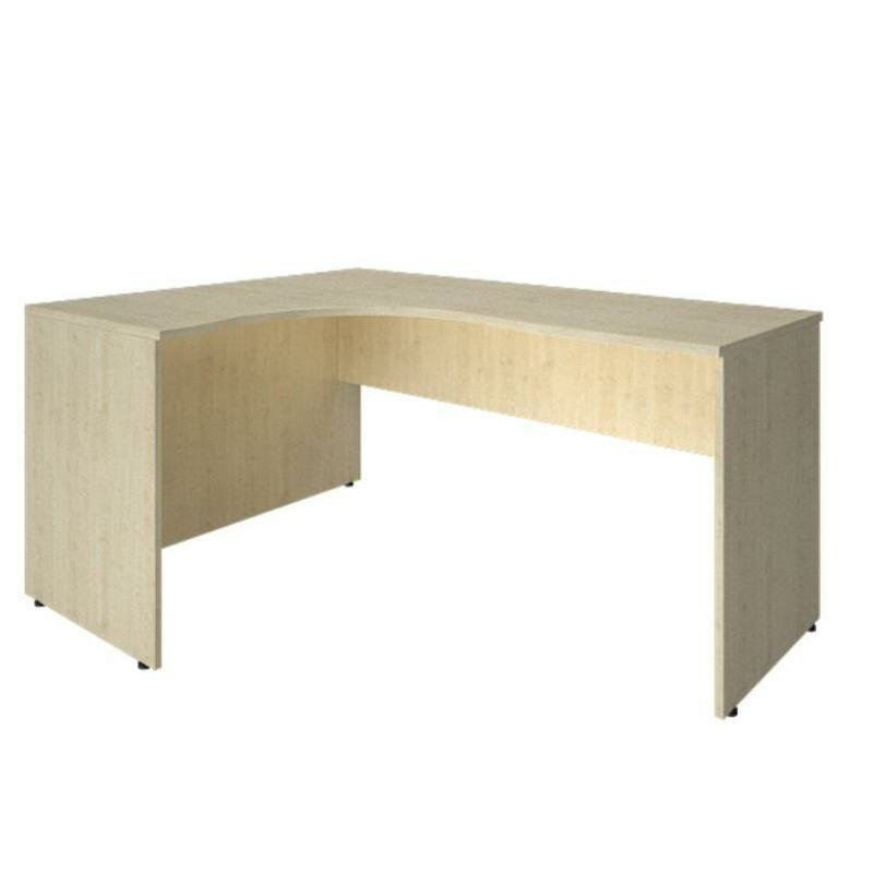 | Угловые письменные столы. Этот вариант размещается в углу помещения и за счет своей конфигурации имеет очень вместительную столешницу. Ящики могут размещаться как с одной, так и с двух сторон, все зависит от размеров мебели, ведь должно оставаться достаточно пространства для ног посередине. | |