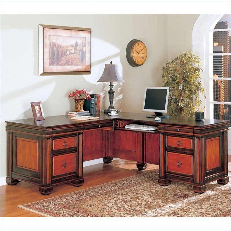 - Стильный и утонченный L-образный письменный стол из коллекции Magellan в классическом цвете вишни.