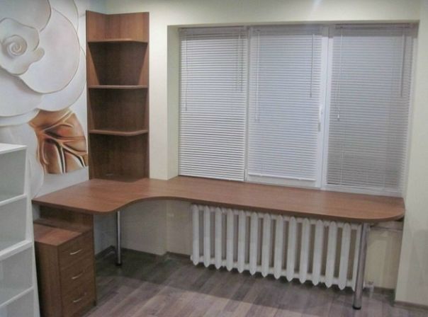 - Продумывая стол под окном, нужно брать в расчет отопительную батарею под ним. Чтобы она не мешала придвинуть мебель вплотную к окну.