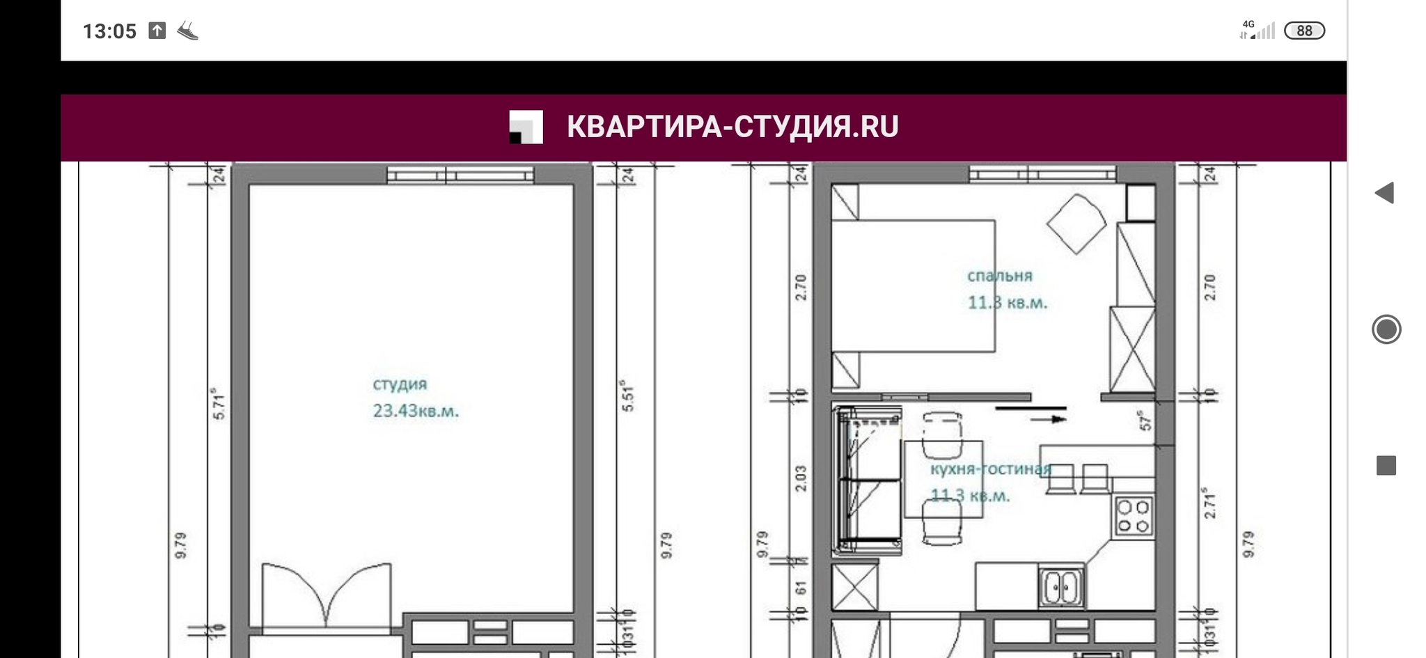 Планировка квадрата или прямоугольника будущей студии поможет посмотреть, как будет выглядеть заполненное мебелью пространство. Разработка плана студии с лоджией, балконом или без них поможет максимально функционально использовать пространство.