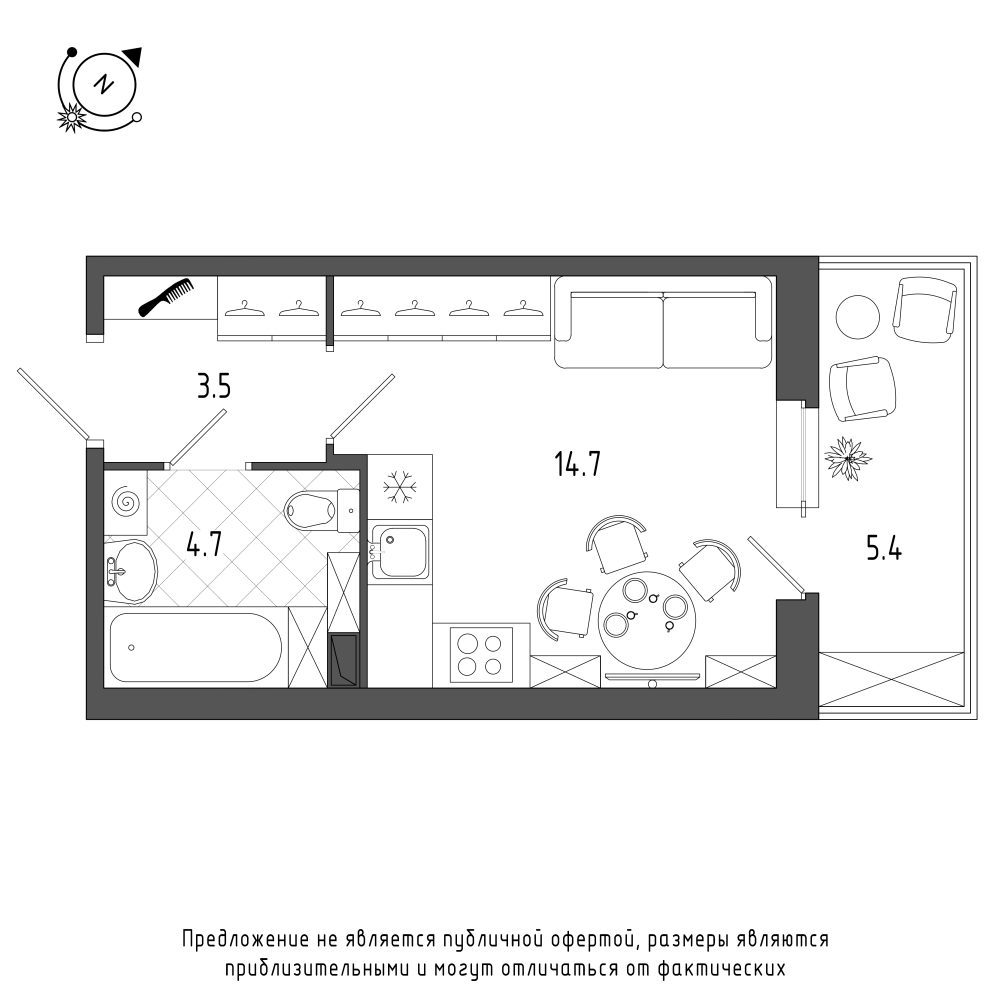 студии 27,89 кв.м. до 38,54 кв.м .; от 26 496 € до 38 545 €,