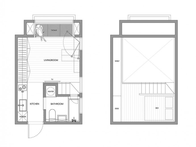 Стеллажи могут эффективно отделить спальню и гостиную, при этом позволяя большому количеству света омывать все пространство.03 09