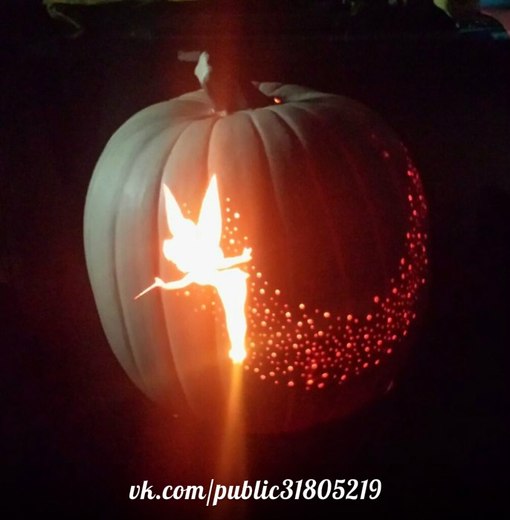 Любые дополнения, такие как: бровки, рот зубчиками или отверстия в виде веснушек — будут отлично смотреться. Ведь свет от свечи будет пробиваться из вырезанных отверстий.
