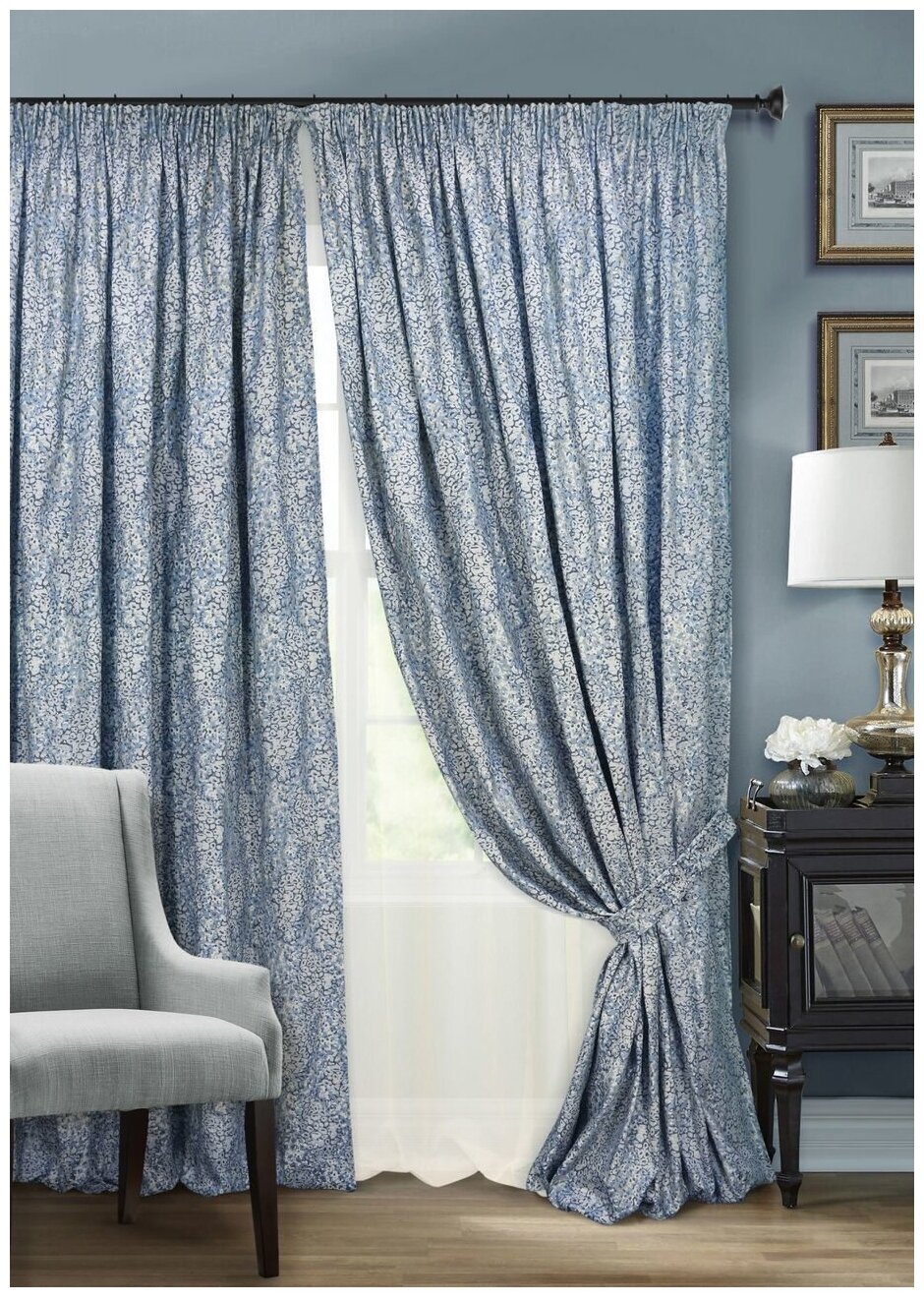 - Сине-голубые стены станут замечательным фоном для тяжелых портьер или легких шторок в серой гамме.