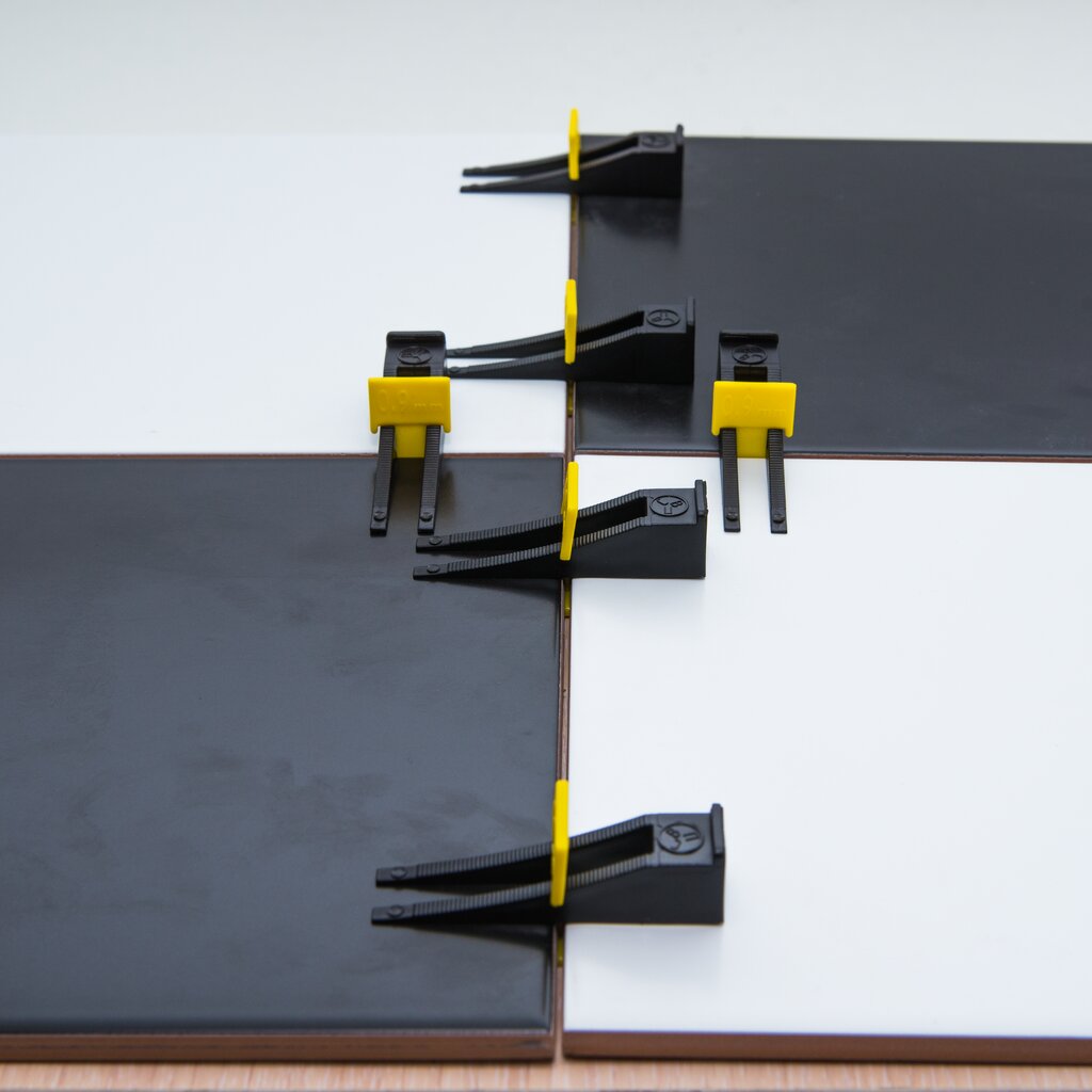 Устройства второй группы дороже, имеют более мощные клин и зажим – это требует использования щипцов, но зато позволяет не только работать с крупноформатной плиткой, но и устанавливать на пересечении 3-4 листов только один фиксатор. На российском рынке хорошо зарекомендовали себя бренды Beorol, Raimondi, Corte, Karofit, Mustang.