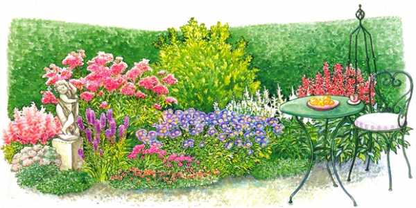 — выбрать более простой способ, который даст гарантированный результат, – воспользоваться готовыми схемами цветников, подходящими для условий вашего дачного участка.