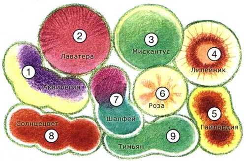 Готовые схемы цветников и клумб из многолетников и однолетников