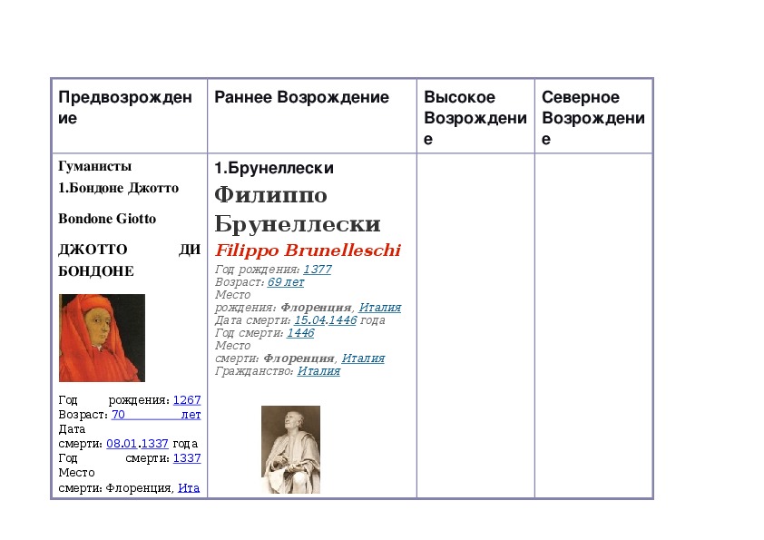 Таблица искусство возрождения: Составьте таблицу «Искусство Возрождения». Продумайте, как она должна выглядеть, чтобы вместить максимальное количество информации по теме