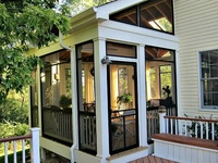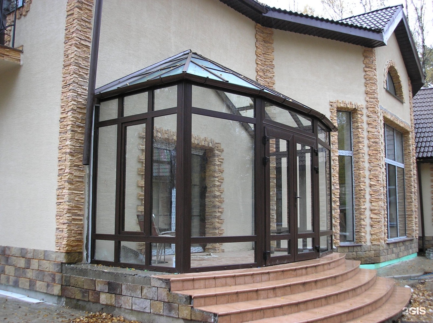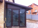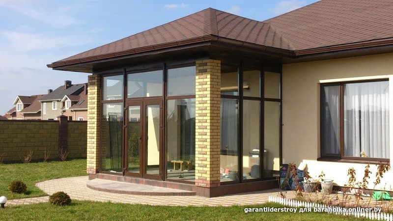Продолжение дома, оформленное в одном с ним стиле, с гардеробом и прочей мебелью. - Веранда. Это всегда пристроенная, застекленная комната.