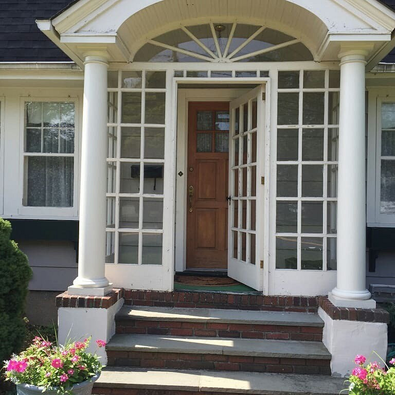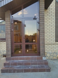 Существует еще один способ защиты жилой части от ветра и сырости. Его часто реализуют совместно с верандой. Речь идет о двойных дверях в основное здание. Одна из них металлическая, вторая — из массива или МДФ (предпочтительней, так имеет большую устойчивость к влаге). Оптимальное расстояние между ними — 40 или 50 см.
