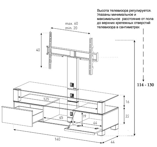 На какой высоте следует устанавливать 55-дюймовый телевизор?
