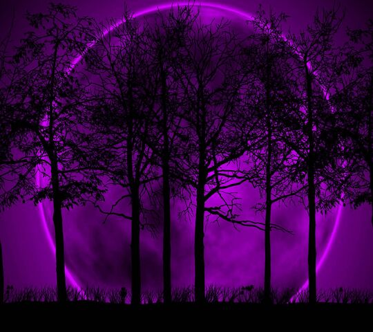 Луной восхищаются многие. Она часть небесного волшебства, и как огромное, но призрачное светило, господствует над тайнами земли. Так ощущения темно-фиолетового могут связываться с ощущением темного леса, лунного света в обрамление звезд и комет. Палитра состоит из белого, верблюжьего, средне-синего, фиалкового, темно-фиолетового, черного.
