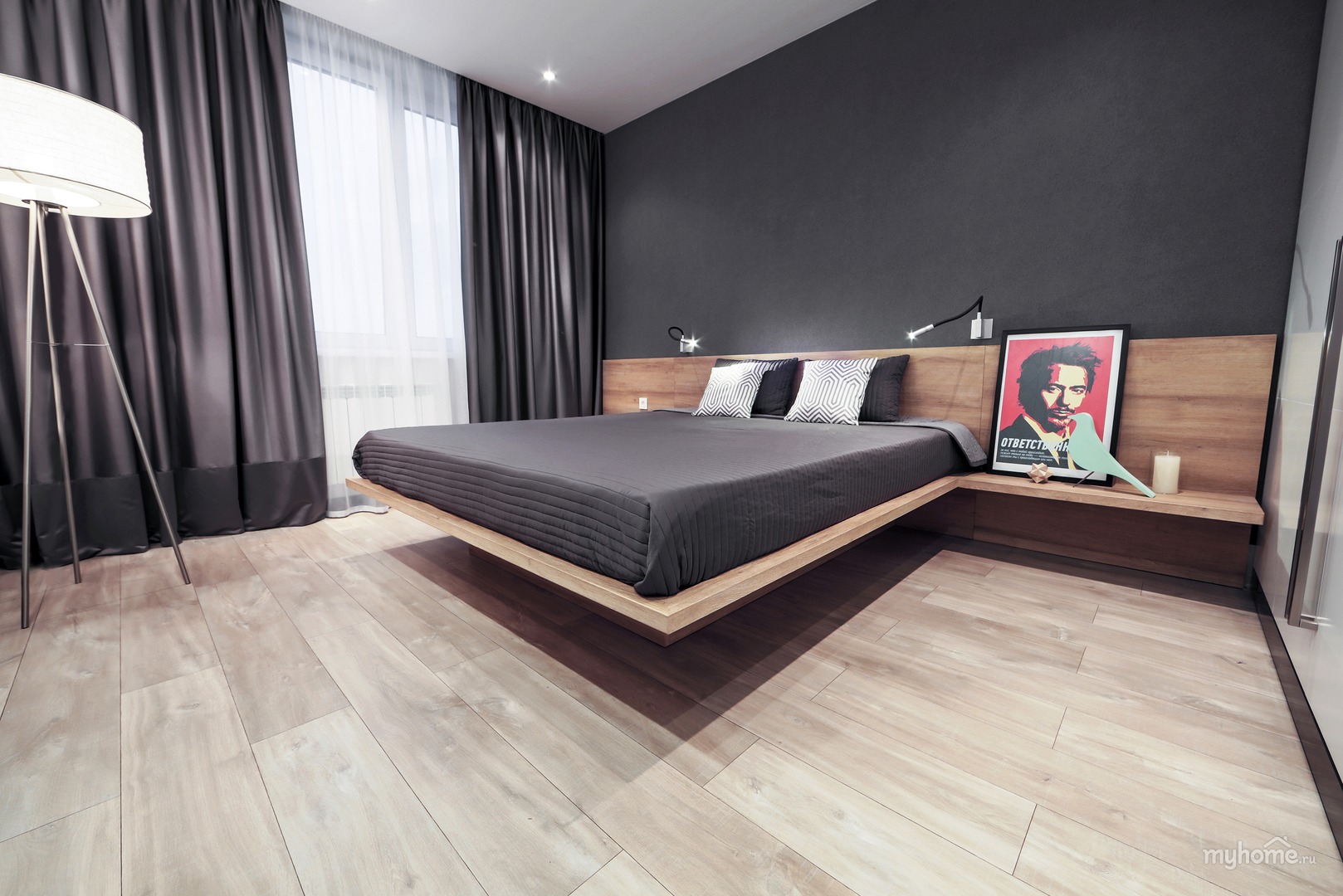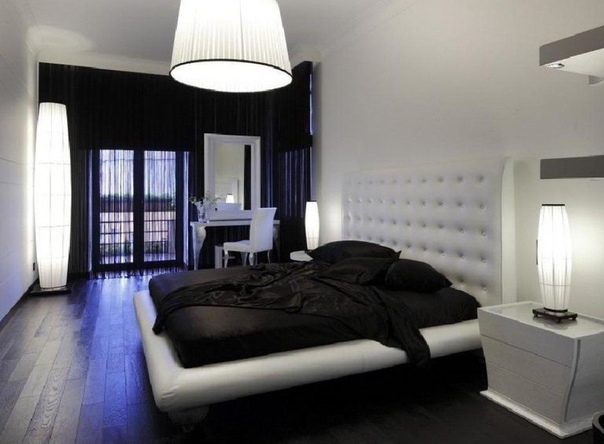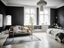Черная стена вовсе не делает эту скандинавскую спальню мрачной или пещерной.На самом деле, он идеально дополняет белоснежный потолок и кровать. Черный цвет наполняет эту комнату живостью и создает нужный контраст.