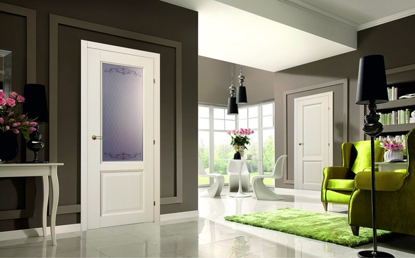 Цвета, используемые с черным в этой комнате: Коричневый и белый.