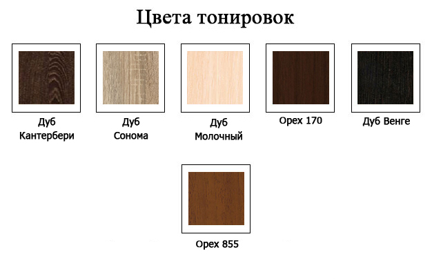 La structure est disponible en noyer, chêne foncé , du charbon ou du tabac, ou à pores ouverts laqué, матовый или блестящий.