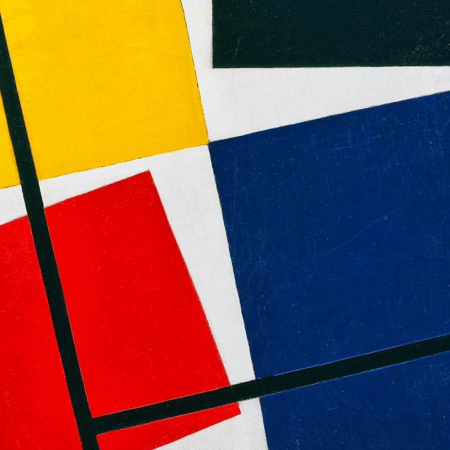 Тео ван Дусбург. Фрагмент картины Counter-Composition VI, 1925.Его художественный стиль формировался под влиянием Ван Гога и Кандинского. Но сильнее всего его впечатляли расчисленные выверенные произведения Пита Мондриана. Он предложил Мондриану работать вместе над созданием движения De Stijl и публиковать одноименный журнал.