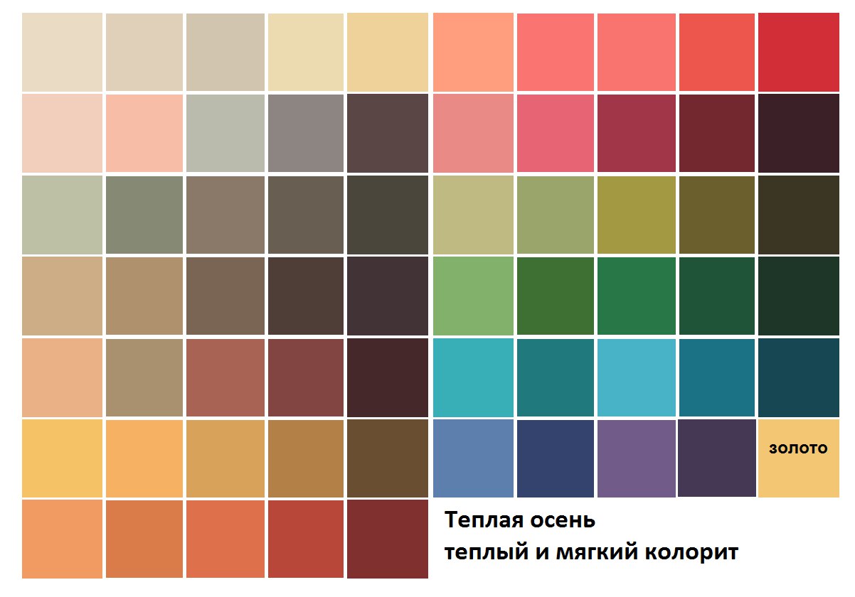 Если кратко — все оттенки, содержащие нюансы желтого, золотистого оттенков — теплые.