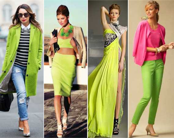 Зелено-желтый в одежде прекрасен для лета и отпусков. Подойдет он обладательницам типа внешности «весна», «осень» и «зима». Для «лета» лучше выбрать приглушенные оттенки с серой или красной примесью. Освежающий оттенок зелени хорошо встраивается в разные стили, и хоть он больше подходит для отдыха, он не испортит деловую одежду, а внесет немного весенней свежести. Это идеальный тон для романтичного, домашнего, спортивного образа.