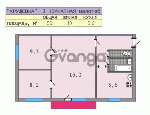 Рассмотрим типичные виды 3-комнатной квартиры в стиле «хрущевка»: