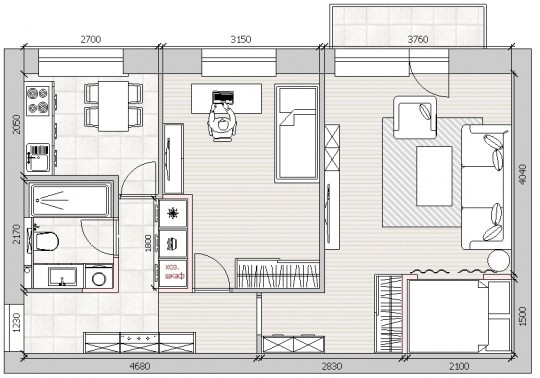 Кроме того, при наличии балкона можно объединить его с гостиной или кухней, что также позволит получить несколько квадратных метров дополнительного пространства.