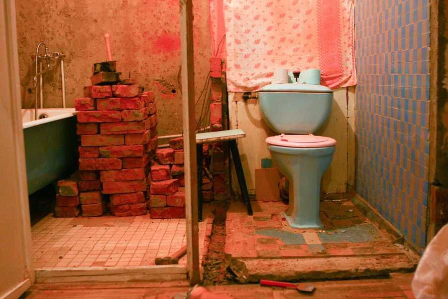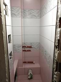 Зачастую не требуется существенного выравнивания перед укладкой плитки, однако оно может понадобиться после демонтажа, если он выполняется. - Маленькая площадь, но большой объем работ. Туалеты в домах панельной застройки в основном совсем небольшие по площади. Из-за этого многим заказчикам кажется, что выполнить работы “под ключ” очень легко, но это обманчивое впечатление. Капитальный ремонт туалета в старой квартире требует демонтажа отделки и сантехники, выравнивания поверхностей, переустройства коммуникаций и декоративного обустройства. В новостройке же все придется делать с нуля, устраняя допущенные застройщиком огрехи. При этом в помещении затруднено перемещение, что осложняет работу мастеров.