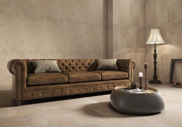 Для тех, кто желает создать элегантную и спокойную атмосферу, идеально подойдет керамогранит Quarzite в бежевом, сером и оттенках темных цветов, имитирующих натуральный камень.