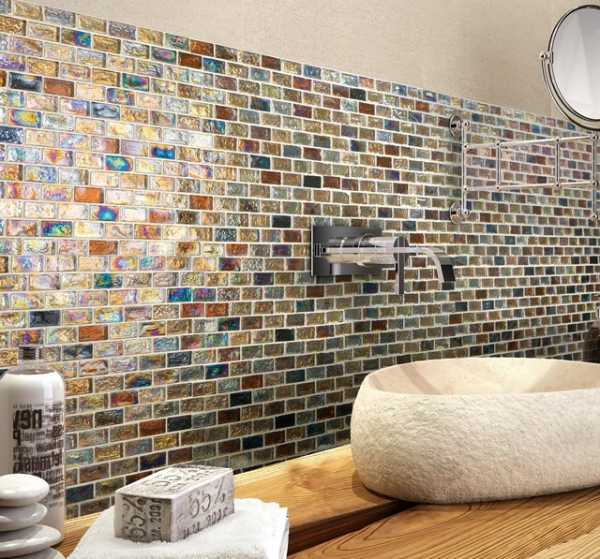 Мозаика отлично подойдет для стен сложной конфигурации. Благодаря маленькому размеру, облицовка не потребует обрезки фрагментов.
